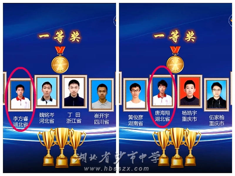 閉幕式上公布了金牌獲得者名單,其中有來自沙市中學的李方睿、唐海翔同學