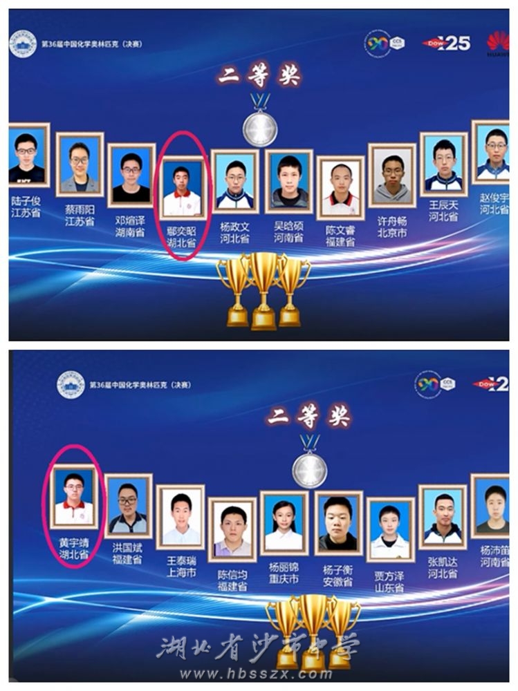 閉幕式上公布了銀牌獲得者名單,其中有來自沙市中學的鄢奕昭、黃宇靖同學 12月1日,2022年第36屆全國化學奧林匹克競賽決賽成績出爐,并在吉林長春舉行了閉幕式和頒獎儀式。沙市中學共有4名學生參加決賽,奪得 2枚金牌與2枚銀牌。