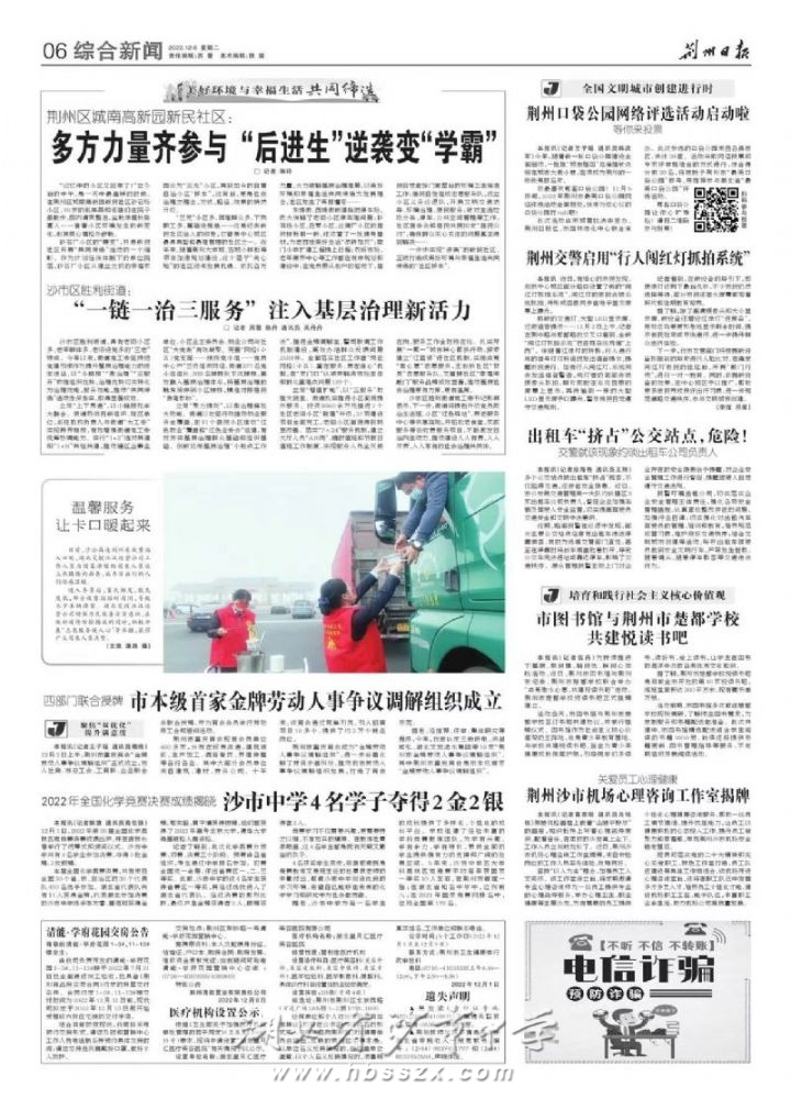 《荊州日報》2022年12月6日報道我校4名學子在全國化學競賽決賽中奪得兩金兩銀