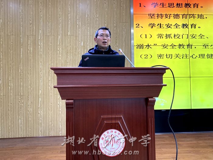 最后,徐校長從三個方面對本學期班主任工作提出要求:第一,班主任要注重培養學生的家國情懷,引導學生關心他人、關心社會,做一個有溫度的君子;第二,班主任要提高學習意識,尤其加強對心理教育方面的學習,關注學生的心理健康;第三,班主任要提高思想站位,以積極的態度面對學校開展的各項工作,落實班級管理和德育工作。