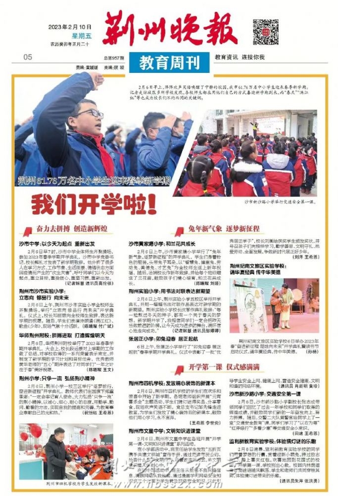 《荊州晚報》2023年2月10日報道我校新學期開學