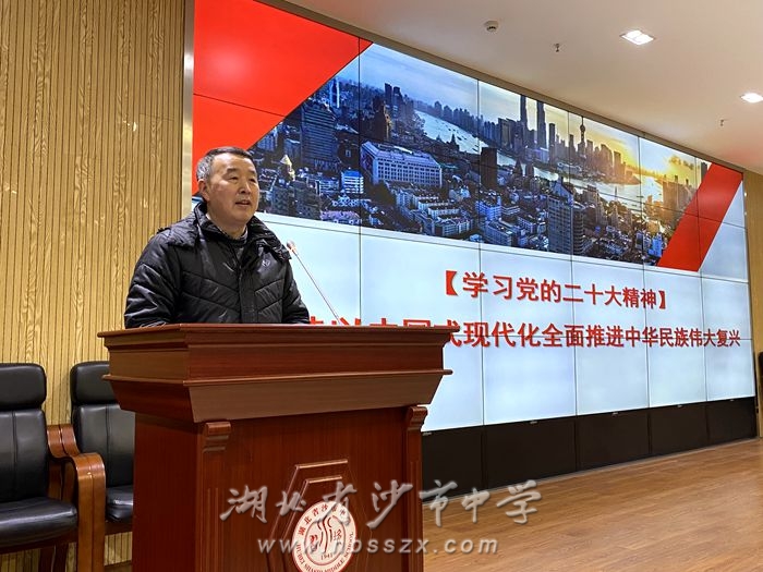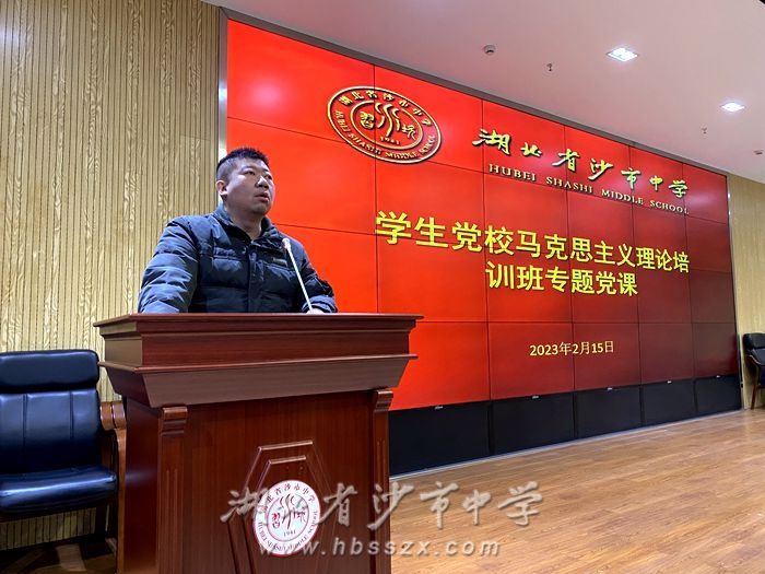 為深入學(xué)習(xí)貫徹黨的二十大精神,持續(xù)深化“青年馬克思主義培養(yǎng)工程培訓(xùn)班”學(xué)員的理想信念教育,2023年2月15日上午第五節(jié)課,在綜合樓二樓會(huì)議室,沙市中學(xué)學(xué)生黨校開展了學(xué)習(xí)黨的二十大精神專題講座。該活動(dòng)由團(tuán)委書記張珺主持,沙市中學(xué)黨委副書記、紀(jì)委書記張志禮出席本次活動(dòng)并進(jìn)行授課,馬培班全體學(xué)員均按時(shí)到場(chǎng)參加學(xué)習(xí)。