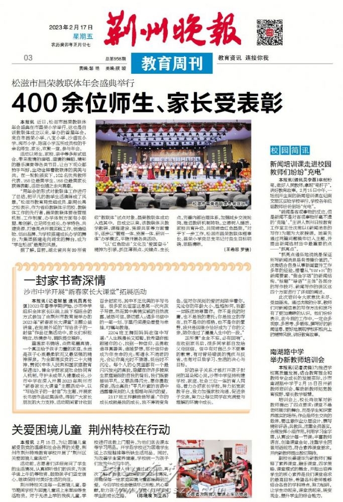 《荊州晚報》2023年2月17日報道我校開展"新春大課堂"拓展活動