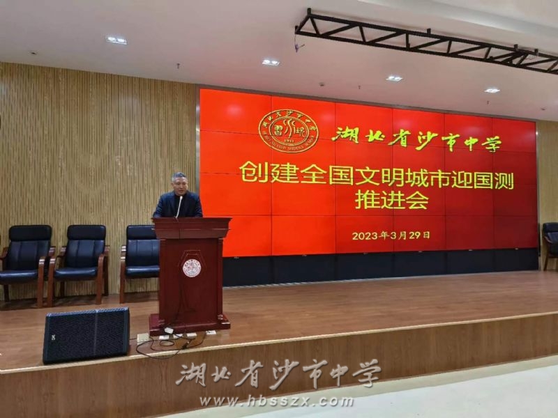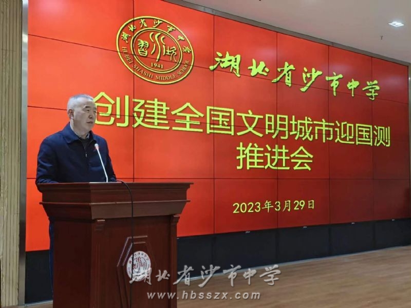 校黨委副書記、紀委書記張志禮講話 為了全力迎接荊州市“創建文明城市”國測測評工作,3月29日上午,我校在綜合樓二樓會議室召開了全校“創文迎國測”推進會。會議由學校黨務校務中心主任唐年新主持,學校全體領導班子成員及教師參加了大會。