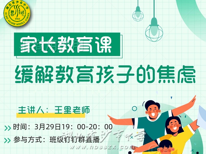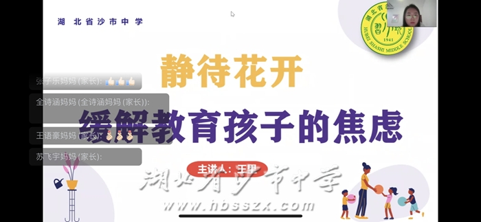 為努力構建學校、家庭、社會和諧育人的德育工作體系,普及科學的育兒知識,幫助家長掌握科學的家庭教育方法,引導家長以積極的心態去面對孩子成長過程中的各種問題,營造良好的家庭育人氛圍。3月29日,我校心理健康專職老師王里帶來了題為《靜待花開,緩解教育孩子的焦慮》家庭教育線上專題講座,全校800多名家長積極參與學習。
