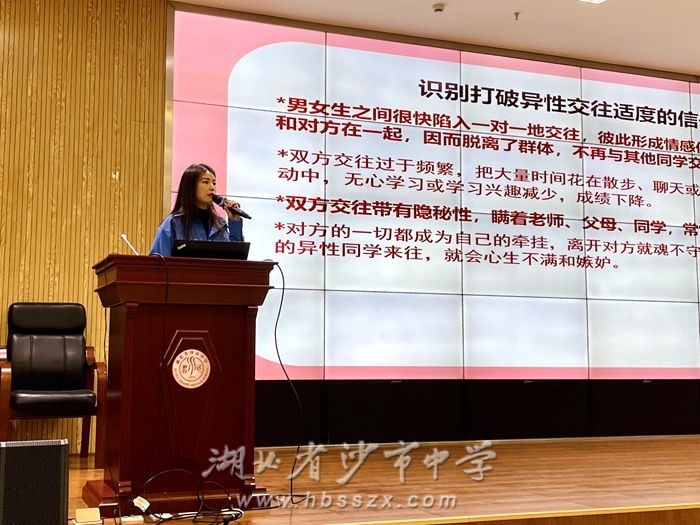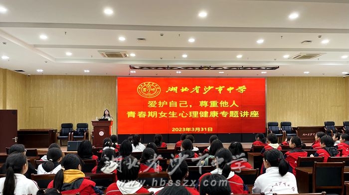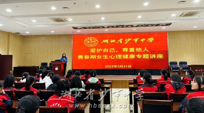為了提高青春期女生的生理心理健康知識水平,讓每一個女生都能正確了解自己的生理特點,消除成長中的困惑,提高青春期女生的防性侵意識和自我保護意識。2023年3月31日下午,湖北省沙市中學組織了高一年級女生開展了“愛護自己、尊重他人”青春期女生心理健康教育知識講座。引導青春期女生了解身心成長變化,使其學會接納、欣賞、保護自己,提高自我保護意識,形成自尊自愛、自立自強的價值取向,正確面對青春期,更快適應青春期生理和心理的變化。