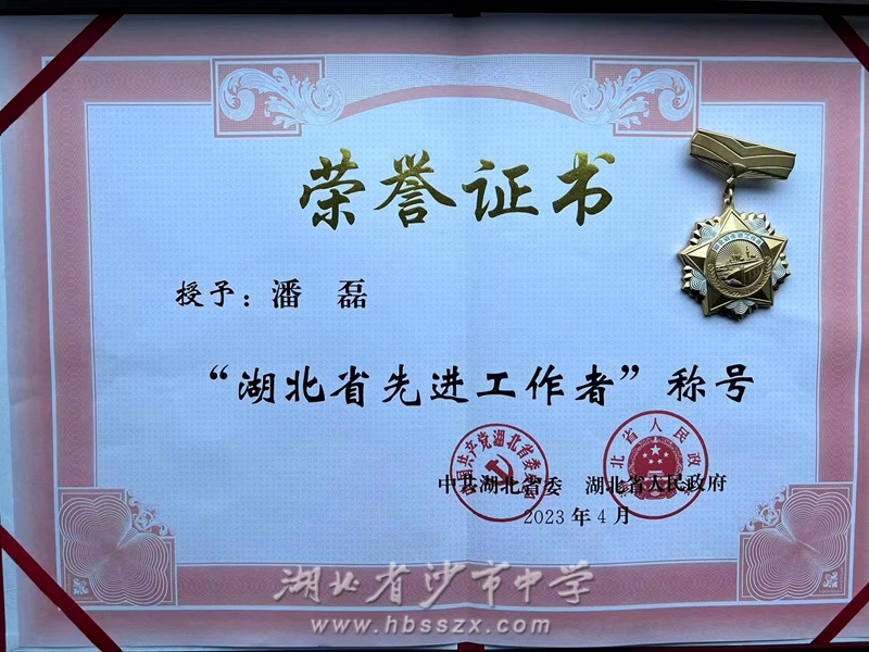 4月27日,2023年湖北省慶祝“五一”國(guó)際勞動(dòng)節(jié)暨省勞動(dòng)模范和先進(jìn)工作者表彰大會(huì)在武漢隆重舉行,沙市中學(xué)教師潘磊被被省委、省政府授予“湖北省先進(jìn)工作者”榮譽(yù)稱號(hào)。