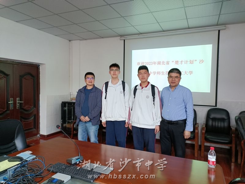 杜何為教授(右1)、潘磊主任(左1)、章詩東(左2)、楊思涵(右2)合影 4月29日下午,2023年楚才計劃荊州項目負(fù)責(zé)人、沙市中學(xué)教務(wù)處主任潘磊和科技實驗中心副主任黃燕平帶領(lǐng)“楚才計劃”項目生物學(xué)科學(xué)生章詩東、楊思涵到長江大學(xué)生命科學(xué)學(xué)院參觀學(xué)習(xí),并拜訪了長江大學(xué)生命科學(xué)學(xué)院副院長杜何為教授。杜何為教授是“楚才計劃”荊州項目生物學(xué)科高校導(dǎo)師。