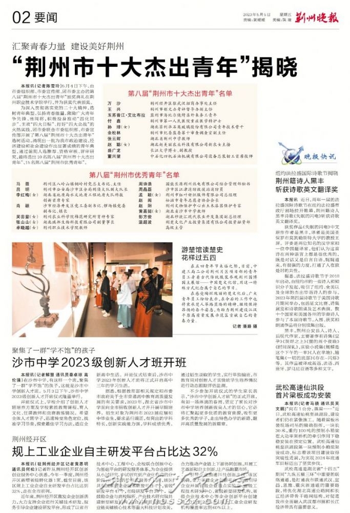 《荊州晚報》2023年5月5日報道我校2023級創(chuàng)新人才班開班