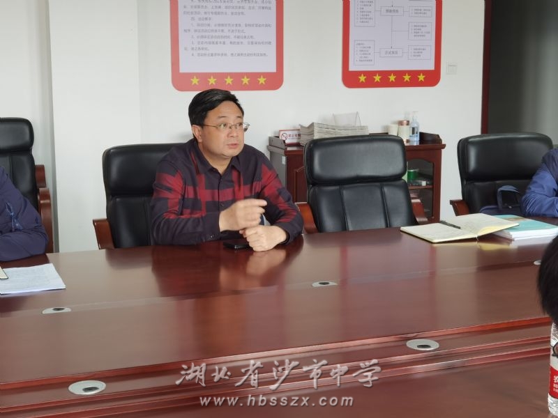 校黨委副書記、校長徐善慧發(fā)言 5月24日下午,市委組織部組織一科副科長汪文兵一行到我校調(diào)研“荊州市入黨積極分子隊(duì)伍建設(shè)創(chuàng)新‘揭榜掛帥’項(xiàng)目”情況,市教育局直屬機(jī)關(guān)委員會(huì)副書記王強(qiáng)主持調(diào)研座談會(huì),沙市中學(xué)黨委副書記、校長徐善慧,黨委副書記、紀(jì)委書記李義國陪同調(diào)研。