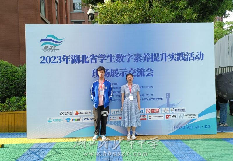 2023年湖北省學生數(shù)字素養(yǎng)提升實踐活動現(xiàn)場展示交流會于2023年5月26-28日在武漢舉行。我校2023年湖北省“楚才計劃”荊州項目學生2103班廖秭宣、2104班宋澤恩同學作為荊州市高中學校唯一代表參加了活動的科創(chuàng)實踐類創(chuàng)客項目“創(chuàng)意智造”比賽。