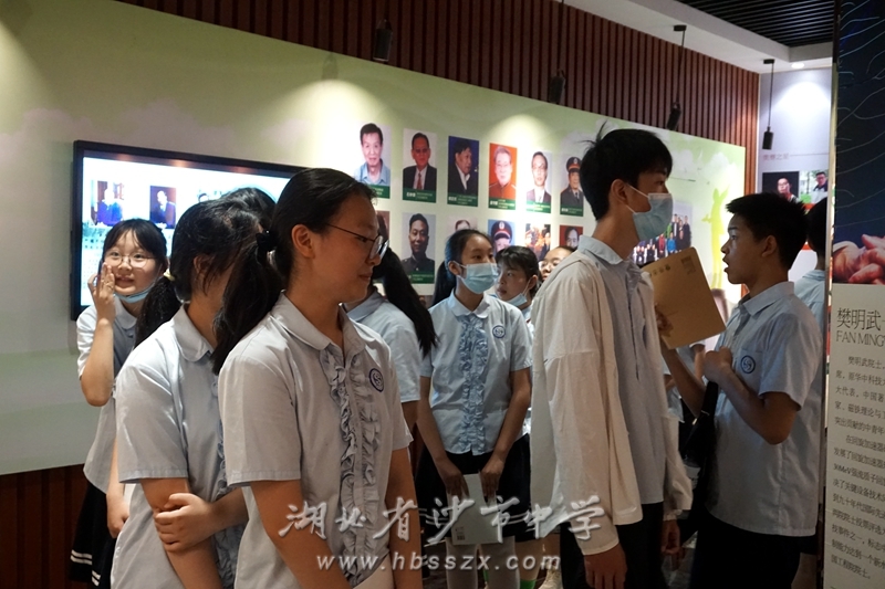 在沙市中學黃嘉懿老師的帶領下,同學們首先參訪了沙市中學校史館和院士墻。學生們駐足凝望,從一個個展板、一件件實物中,他們了解到了沙市中學的發展歷程,深刻感受到了沙市中學厚重的歷史積淀、豐碩的辦學成果和奮發的進取精神。