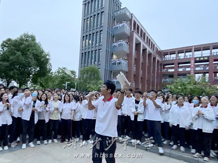當晚七點,在學生會干部的組織下,高一、高二年級教學樓響起了“高三加油!高考必勝!”的吶喊聲,高三學子們聞著歌聲來到走廊,寂靜的晚自習瞬間被點燃。