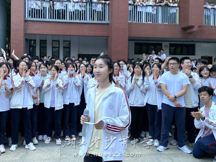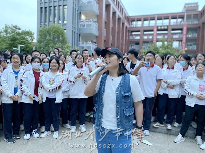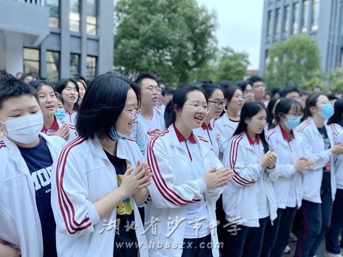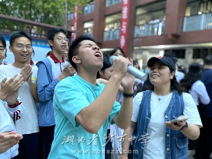 隨后,曹芳老師代表高三全體教師獻唱一首經典老歌《再見》,表達了對高三學子的殷切期盼與祝福,將現場氛圍推向高潮。在曹老師的帶領下,全體高三學子齊聲高喊“荊州高考看沙中,站在沙中最高峰,我不成功誰成功”。現場氣氛熱烈,鼓舞人心。