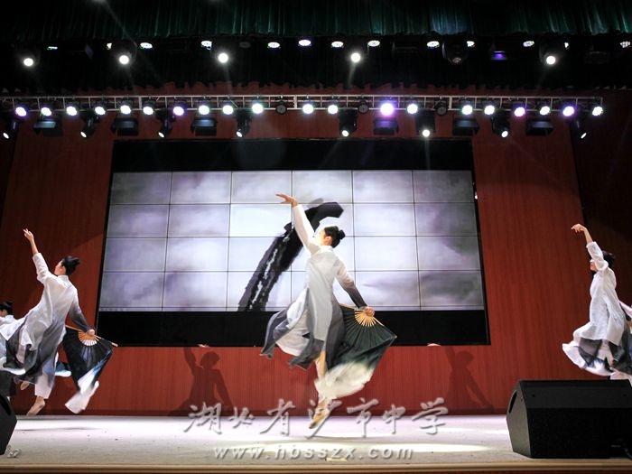 在音樂伴奏下,高三年級的17位班主任陸續登場,老師們一改往日的嚴師形象,滿懷柔情與不舍共同完成了詩朗誦《習坎之歌》。緊接著,各班班長上臺獻花,并與老師們深情擁抱。全場掌聲雷動、歡呼聲不斷,將晚會的氣氛推向高潮。