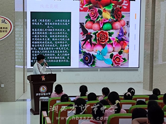 首先,燕雨彤同學就“京劇文化”,展開科普。燕同學通過視頻、音頻等多種通俗易懂的方式介紹京劇文化,活動設計別出心裁,讓小朋友們也能領悟到京劇的魅力。張天青同學基于在校學習的人文地理知識,生動形象地描述為小朋友們介紹不同地區的風土人情,讓小朋友們大開眼界。李子怡同學則以“大美荊州”為主題,向同學們介紹了家鄉傳統文化,增進了同學們對家鄉文化的認同感。