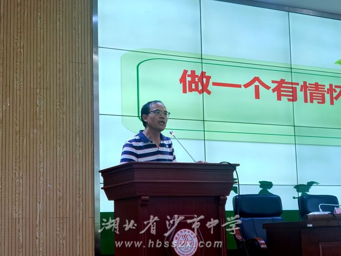 隨后,我校優秀班主任代表羅圓成老師上臺分享自己多年的工作心得。羅老師以《做一個有情懷的睿智班主任》為題,結合自身多年班主任工作經驗,以《道德經》中的“道法術器”為理論依據,總結出一套獨具特色的班級管理哲學。此外,羅老師還創造性使用自媒體來記錄學生成長,獲得了廣泛的關注,也成為了我校德育工作的一塊招牌。