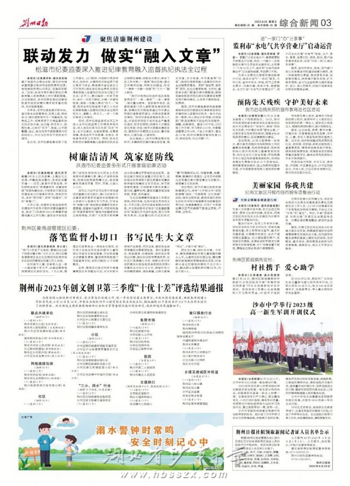 《荊州日報》2023年8月25日報道我校舉行2023級高一新生軍訓開訓儀式