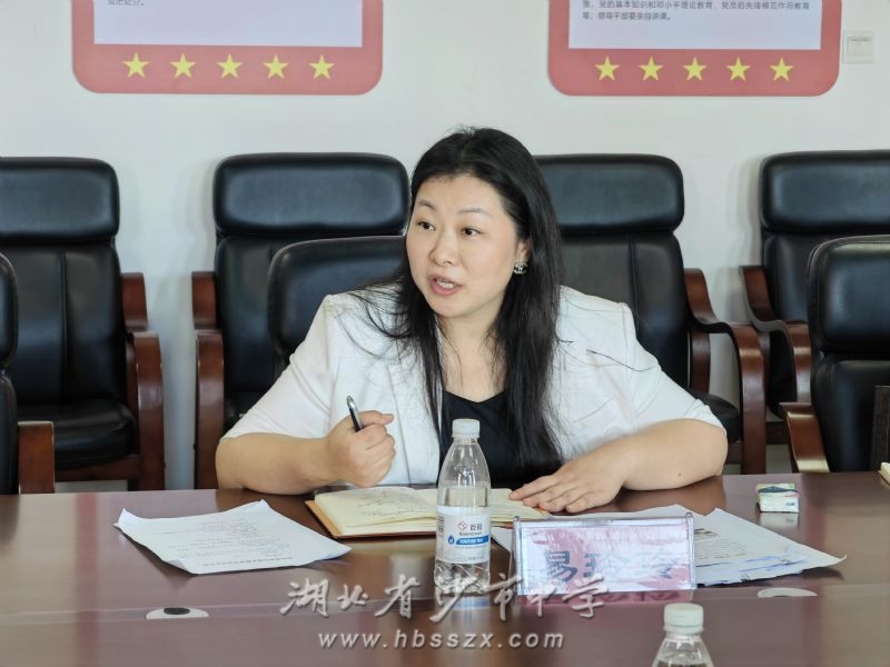 座談會現場 2023年9月1日下午,第六屆市政協委員易玲玲,市教育局基教科科長宋國亮,市婦聯家兒部部長賈宜平,沙北實驗學校黨委書記、校長何新陸等一行人到訪我校,針對市政協關于健康校園、心理健康、家庭教育三件政協提案辦理工作召集座談,征詢意見。沙市中學黨委委員、副校長胡直、唐年新,總務處副主任何婷,心理教師王里、雷明格參加了座談。