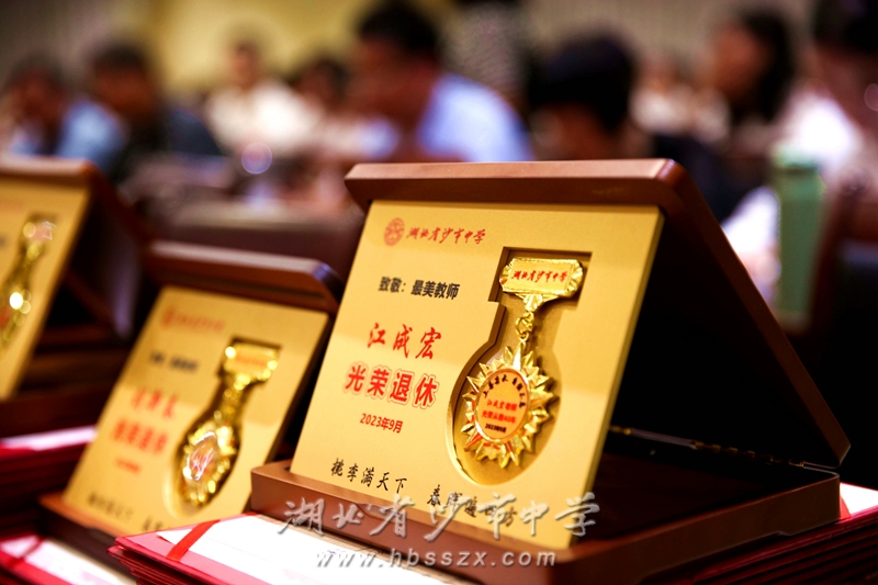 校領導與榮休教師代表合影 別過夏花絢爛,迎來秋葉靜美。大會為沙市中學2022-2023年退休或即將退休的20名教師舉辦了榮休儀式。他們是:張俊、許啟新、余昌齊、劉新春、戴永平、吳祥成、丁家順、沈獻鳳、李成鏹、劉春、劉樂成、胡曉紅、張世紅、劉珉、李兵、何永強、羅忠、李作輝、江成宏、吳本萍。其中吳祥成、李兵、劉新春、戴永平等教師作為退休教師代表來到現(xiàn)場。回首教育生涯,笑看桃李芬芳。老教師們幾十年如一日,為教育事業(yè)默默奉獻,用專業(yè)、敬業(yè)成就學生成長、學校發(fā)展,用執(zhí)著和堅守贏得家長支持、社會贊譽。為表達對榮休教師的崇高敬意,黨委副書記、校長徐善慧為他們一一頒贈紀念品并獻上鮮花,把心中的感激和祝福送給他們。