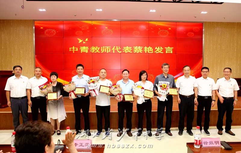 湖北達雅生物科技股份有限公司董事長徐振明,黨委副書記、校長徐善慧共同為獲得市級以上榮譽的老師頒獎。