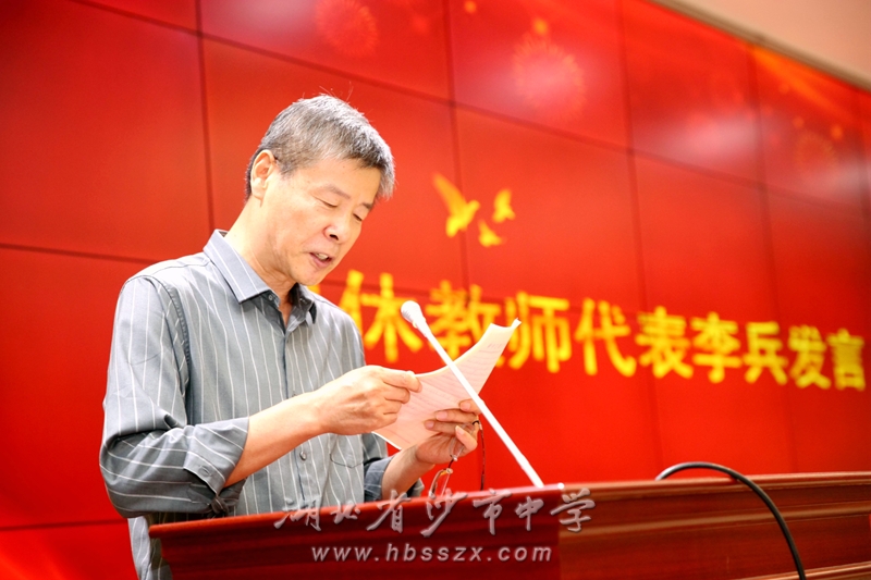 李兵老師代表榮休教師發(fā)言。他滿懷深情地回顧了在沙市中學的難忘歲月,飽含著對教育事業(yè)的熱愛、眷戀,表達了對學校和老師們的美好祝福。
