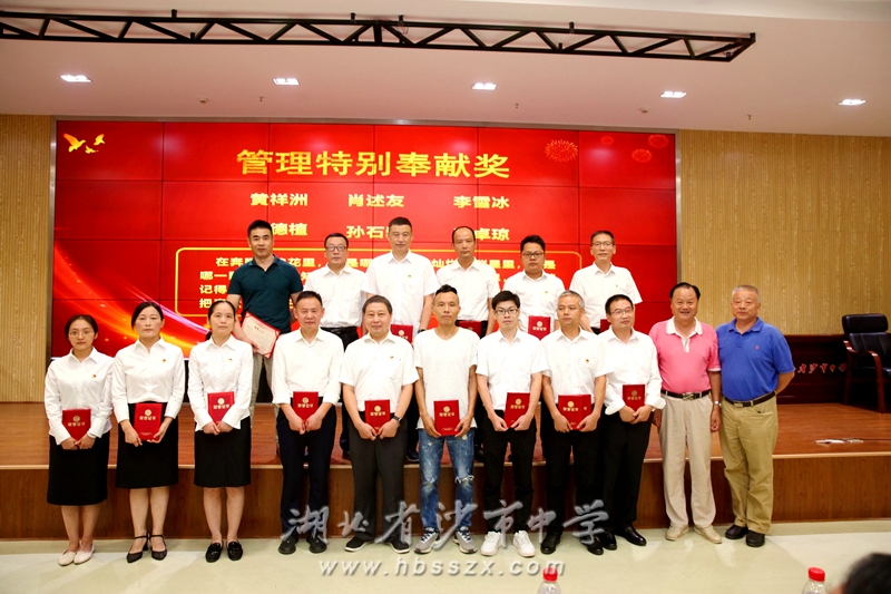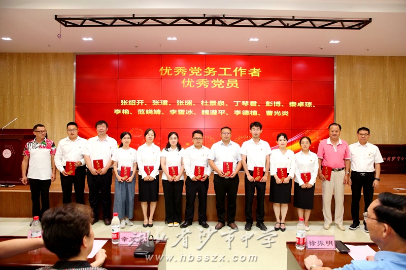 湖北新地投資集團有限公司執(zhí)行董事、沙市中學85屆校友劉劍,黨委副書記、紀委書記李義國共同頒發(fā)“優(yōu)秀黨員”“優(yōu)秀黨務工作者”等獎項。