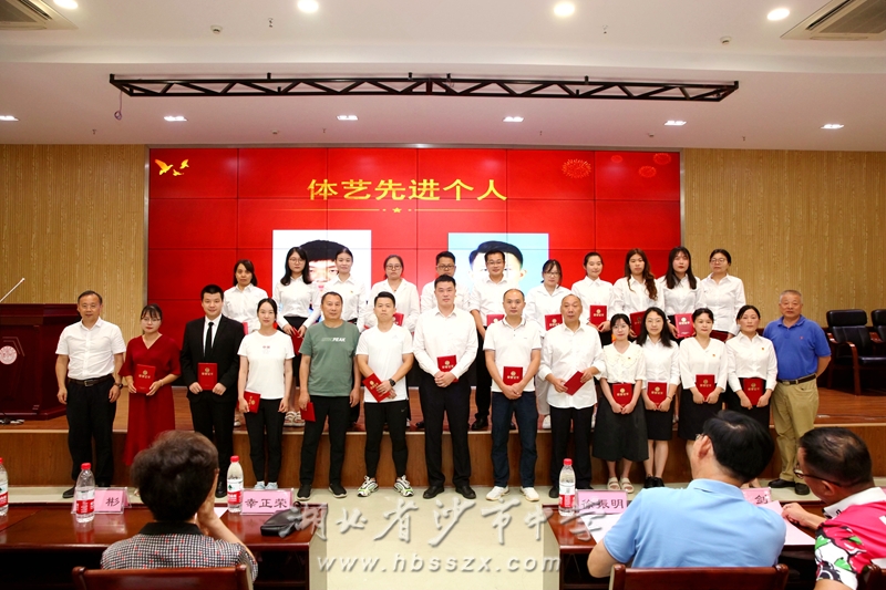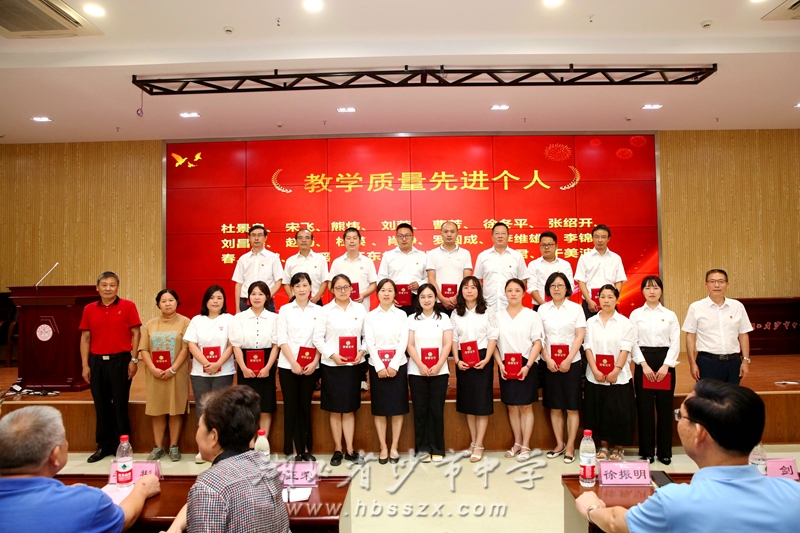 原沙市區(qū)副區(qū)長、沙市中學81屆校友李彬,副校長趙文華共同頒發(fā)教學資源庫建設先進組、教學比武能手、教科研先進個人、體藝先進個人等獎項。