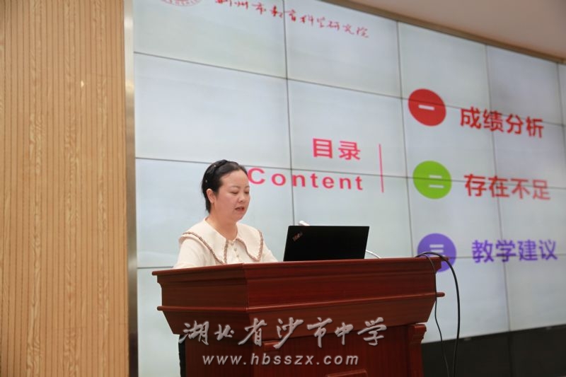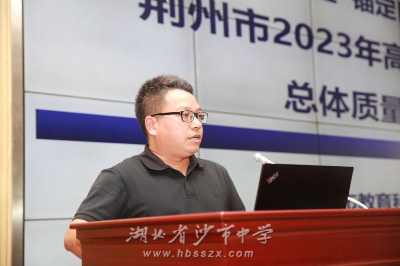 荊州市教科院生物教研員吳雪玲作質量分析報告 荊州市教科院黨總支委員、副院長陳子俊作教學督導檢查反饋,主要是針對上學期的教學研究、課堂教學、學生調研等情況進行說明。