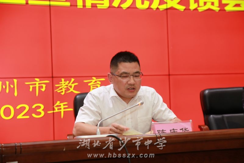 9月26日下午,荊州中學、沙市中學教學質量分析暨教學督導檢查情況反饋會在沙市中學綜合樓二樓會議室召開。荊州市教育局黨組成員、副局長陳慶華出席并講話,市教育局基教科科長宋國亮主持會議。