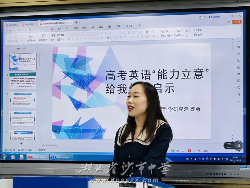 鄒華麗老師授課 荊州市教科院高中室主任陳勇老師做了關(guān)于高考“能力立意”的啟示報(bào)告,他強(qiáng)調(diào)我們需要聚焦閱讀、寫(xiě)作和聽(tīng)力能力培養(yǎng)。將閱讀和寫(xiě)作教學(xué)體系化,建立獨(dú)立于統(tǒng)編教材的閱讀、寫(xiě)作教學(xué)資源體系,建立獨(dú)立的閱讀和寫(xiě)作教學(xué)體系。改變碎片式的“重知識(shí)輕能力”的英語(yǔ)教學(xué)的方向性問(wèn)題改變依托考試和教輔資料進(jìn)行碎片式教學(xué)的傳統(tǒng)模式。
