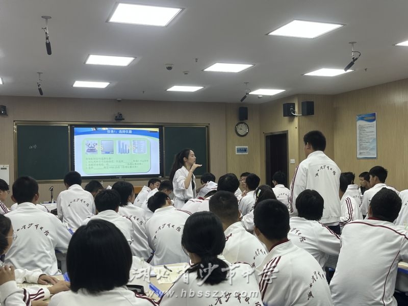 與會人員首先在綜合樓五樓錄播教室觀摩沙市中學青年教師夏敏執教的新授課《一定物質的量濃度溶液的配制》。課后,夏敏對本節課的設計思路做了闡述,沙市中學化學教研組長杜瑛就本校集體打磨實驗新授課課型雛形的情況作了匯報,與會人員對該課進行了點評。
