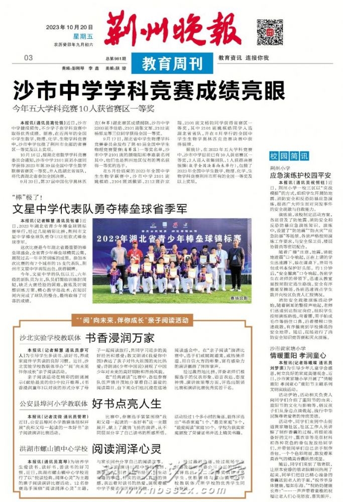 《荊州晚報》2023年10月20日報道我校學科競賽成績亮眼