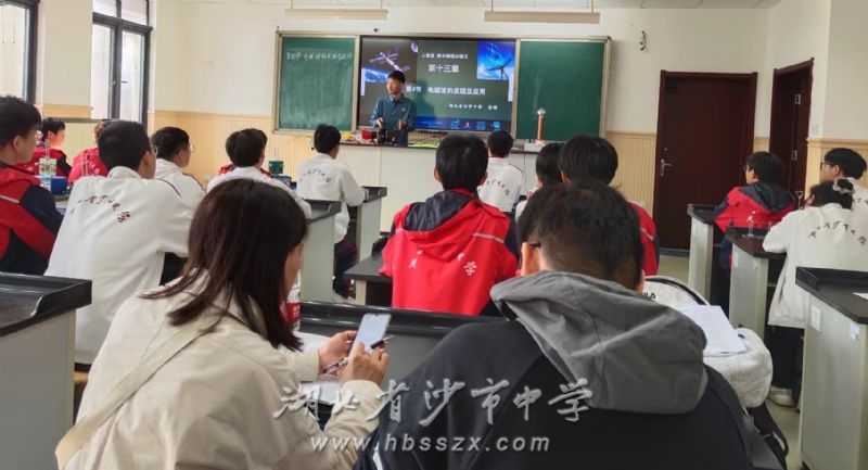與會人員在綜合樓三樓物理實驗室觀摩沙市中學教師彭博執教的新授課《電磁波的發現及應用》。課上,彭博老師生動講解,引領同學們一起探究電磁波的發現之旅。講課語言精妙,實驗過程精彩紛呈,引得與會老師爭相觀看。課后,關鋒主持針對該課的點評。