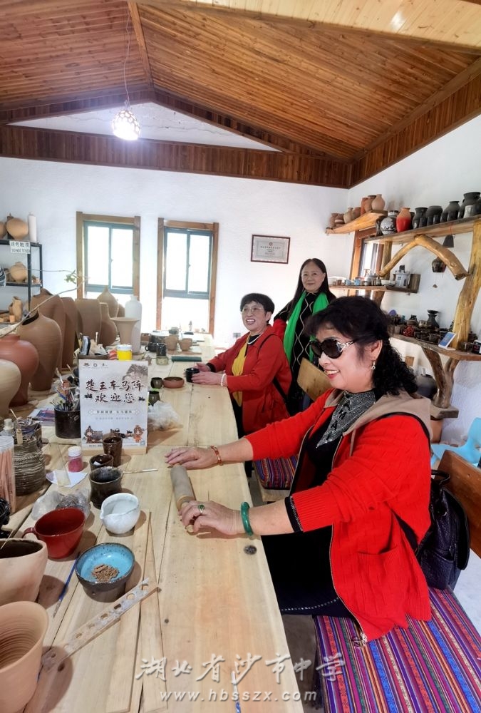 金家窯·驛位于荊州區川店鎮雙堰村。這里林木幽深,風景秀麗。老教師們觀摩了集鄉村民宿、森林木屋、戶外探驗、野外露營、文化創意基地為一體的具有森林康養功能的度假慢生活景區,領略了省級非物質文化遺產“郢城泥陶”的獨特技藝。他們一邊游玩一邊互相分享自己退休生活的點點滴滴,處處洋溢著歡聲笑語。