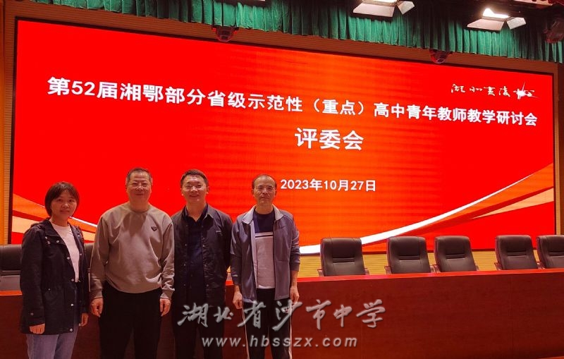 10月27日至29日,第52屆湘鄂部分省級示范性(重點)高中青年教師教學研討活動在湖北省宜昌市夷陵中學舉行。沙市中學參賽教師與夷陵中學、常德市一中、臨澧縣一中、澧縣一中、岳陽縣一中、沅陵縣一中等六所省級示范高中的教師代表交流學習。經過選手賽課、評委打分等流程,沙市中學夏敏、秦宏梟兩位教師分別榮獲化學一等獎、班團一等獎,陳婷、李明慧兩位教師分別榮獲數學二等獎、英語二等獎。