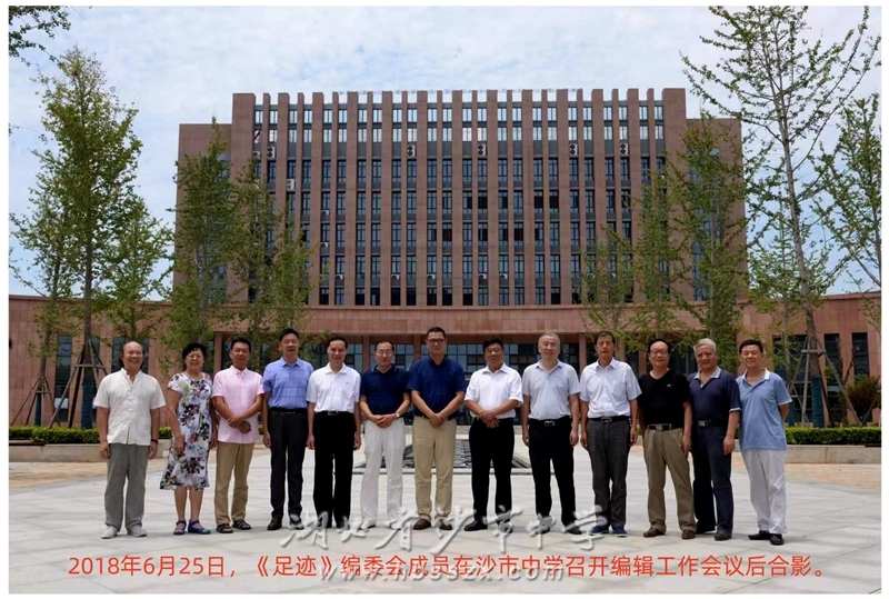 2018年《足跡》編委會與學校領導在沙市中學合影 11月24日是《足跡:沙市中學老三屆文集》公開發行五周年紀念日。23日,該書編委會舉行了慶祝酒會,回顧當年,情懷今朝,憧憬未來。