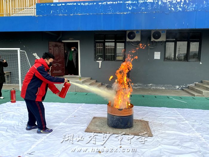 集合完畢后,學工處主任李昌坤對本次安全疏散演練進行點評。李昌坤強調了演練的重要性,并提出希望同學們養成動作迅速、撤離有序的好習慣。李昌坤還向同學們講解了干粉滅火器的滅火原理及使用方法,并教授各班學生代表正確使用滅火器。