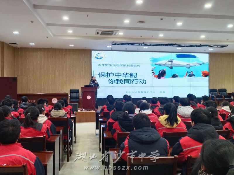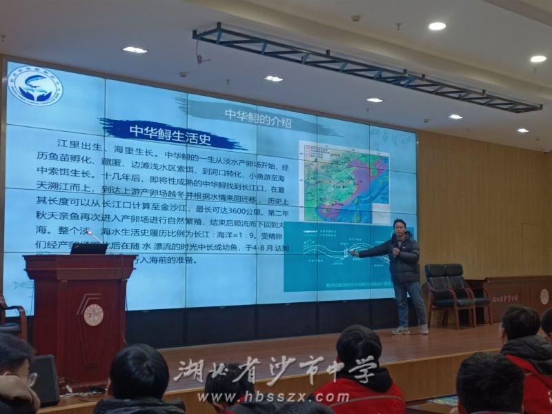 為進(jìn)一步宣傳水生野生動物保護(hù)政策法規(guī)及科普知識,提高青少年水生野生動物保護(hù)科學(xué)觀,促進(jìn)人與自然和諧共生,荊州市中華鱘保護(hù)中心周越老師于12月21日下午到我校綜合樓二樓會議室進(jìn)行了“保護(hù)中華鱘,你我同行動”的科普講座。