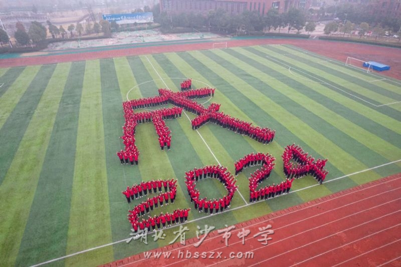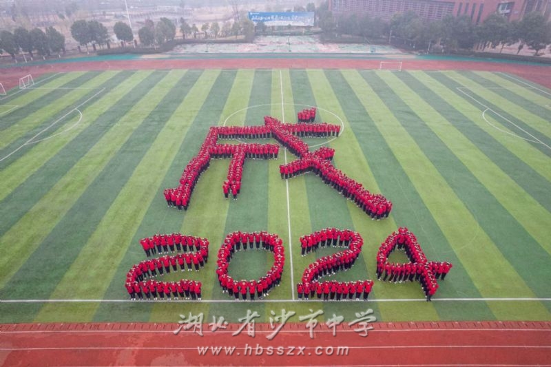2023年12月30日上午,沙市中學(xué)高一年級800余名學(xué)生齊聚操場,在草坪上列隊擺出一個大大的隸書“成”字,以此迎接2024年的到來。