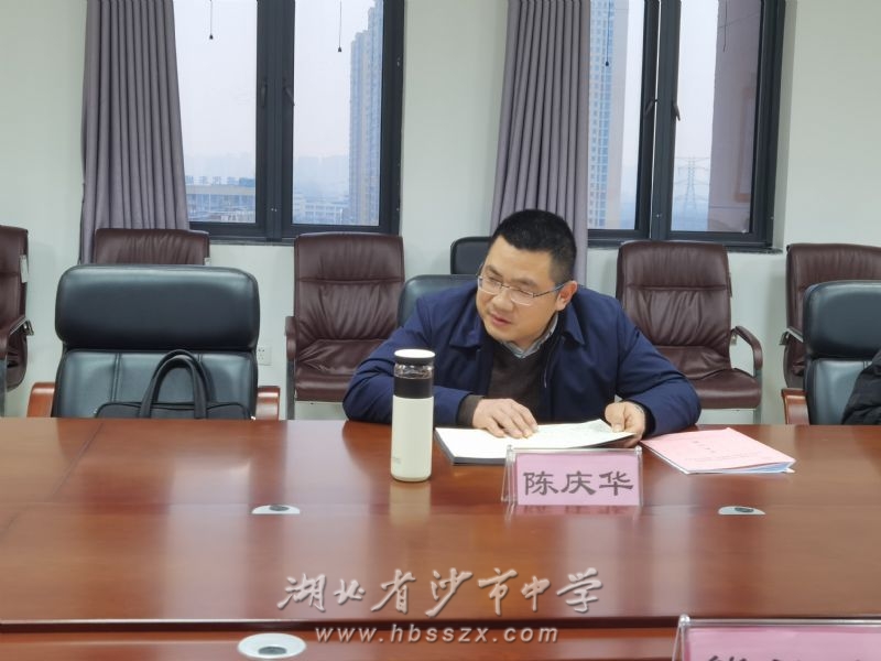荊州市教育局黨組成員、副局長陳慶華講話 按照上級部署要求,1月15日,沙市中學黨委班子召開學習貫徹習近平新時代中國特色社會主義思想主題教育專題民主生活會,荊州市教育局黨組成員、副局長陳慶華,市教育局基教科干部田芳蒞會指導。會議由校黨委書記熊禮才主持,學校黨委班子全體成員參加,學校各支部書記列席。