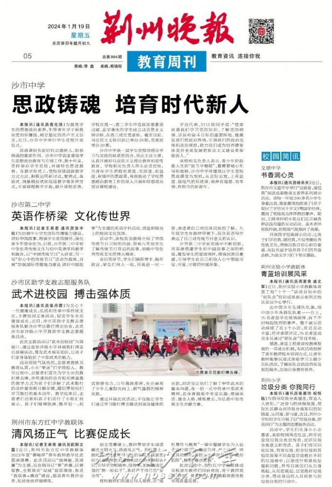 《荊州晚報》2024年1月19日報道我校思政鑄魂,培育時代新人
