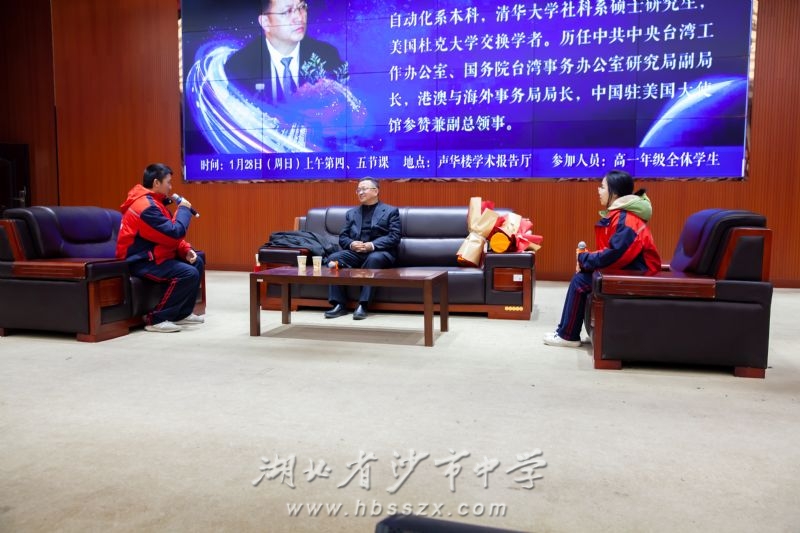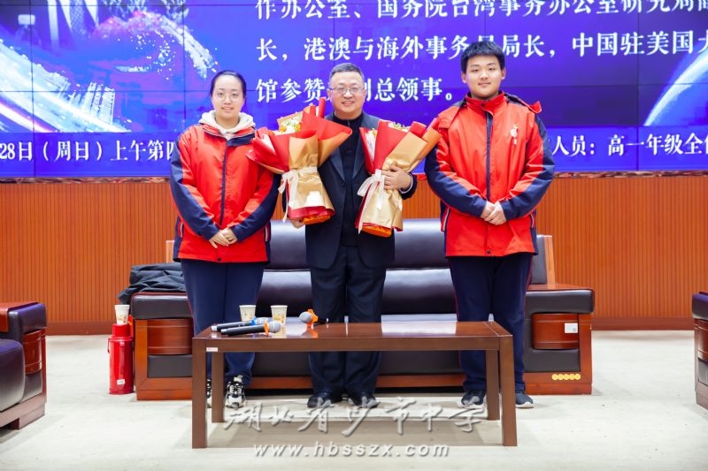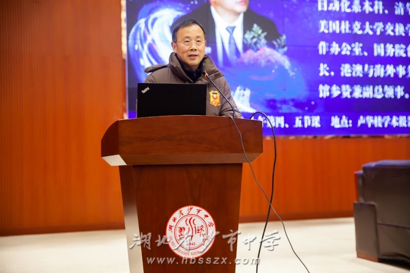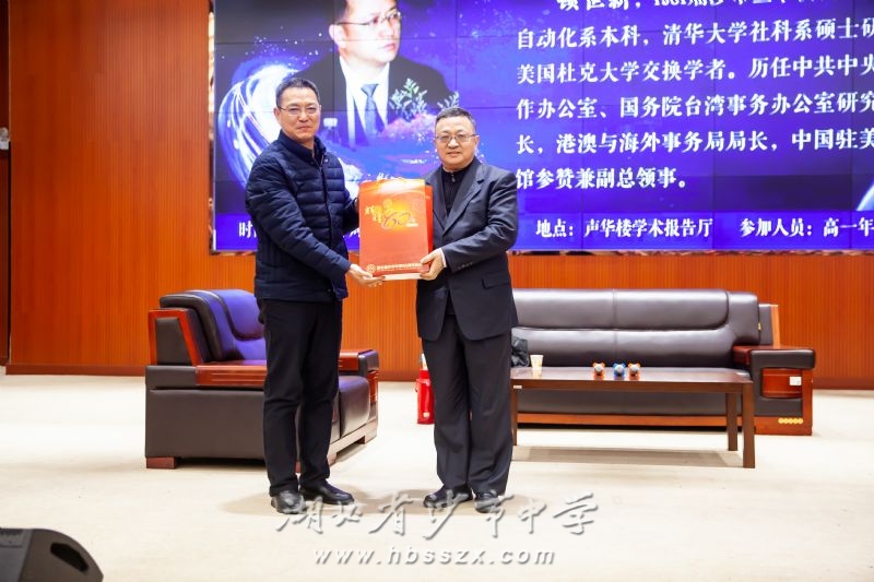 1月28日上午,沙市中學1981屆校友、中國駐美國大使館參贊兼副總領事頓世新作客“習坎講壇”,帶來了題為《百年未有之大變局下青年學生如何選擇》的精彩講座,1981屆校友、荊州市稅務局副局長程寧陪同來訪。我校黨委書記熊禮才、黨委副書記、校長徐善慧、黨委委員、副校長趙文華、高一年級全體班主任及學生參加了此次活動。
