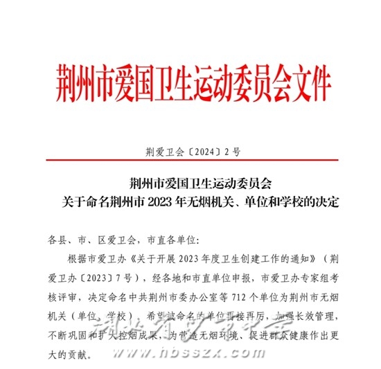禁煙主題班會 日前,荊州市愛國衛生運動委員會發布文件(荊愛衛會[2024]2號),命名一批無煙機關、單位和學校,沙市中學榮獲“無煙校園”稱號。