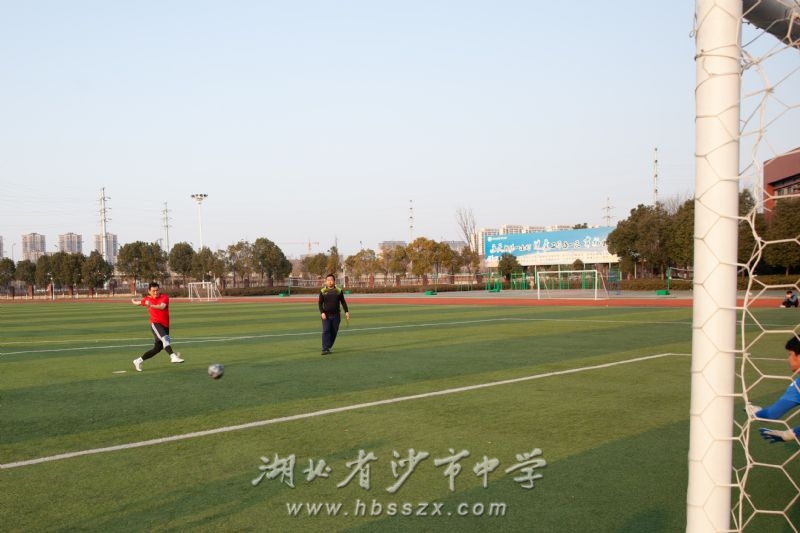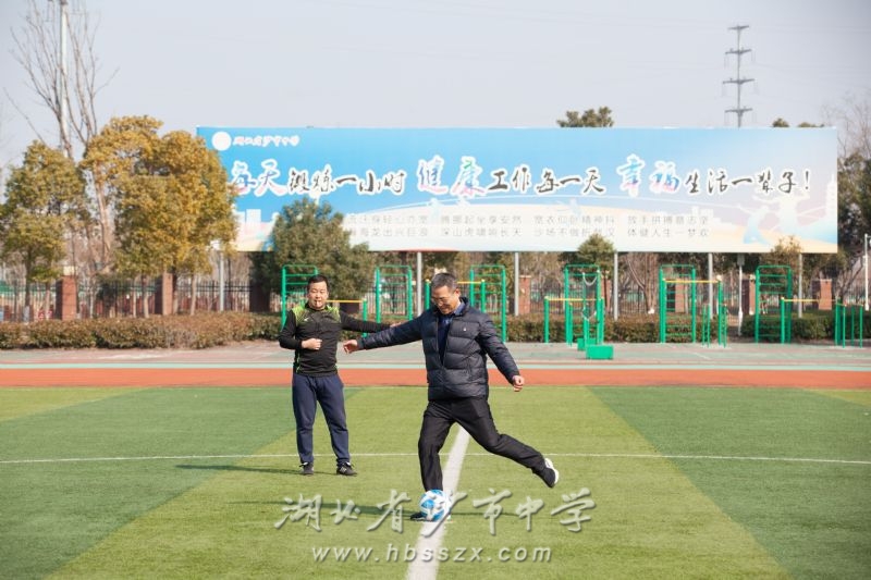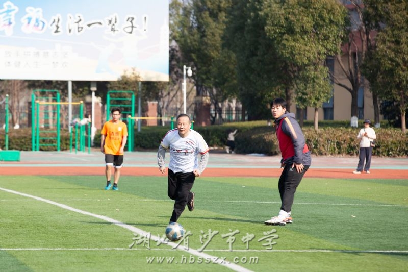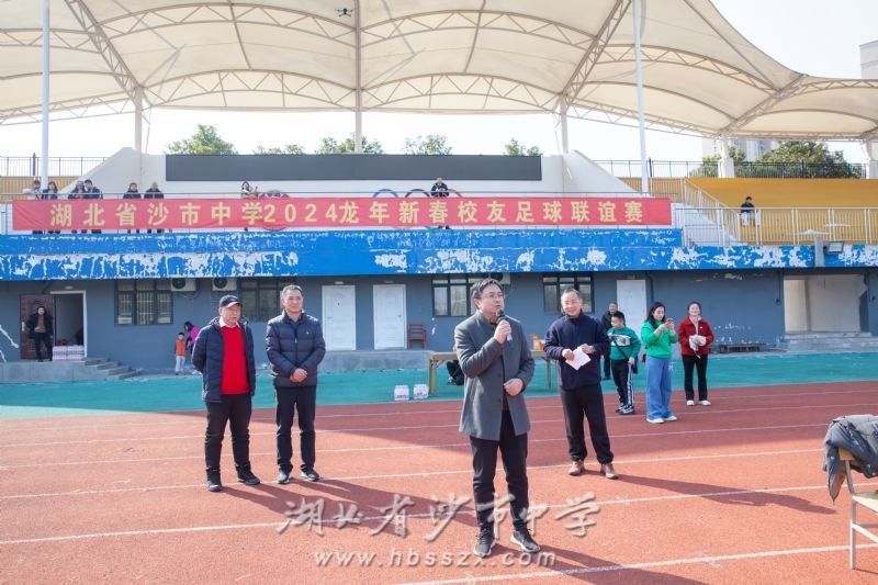 沙市中學黨委書記熊禮才宣布足球聯誼賽開始,并為比賽開球。