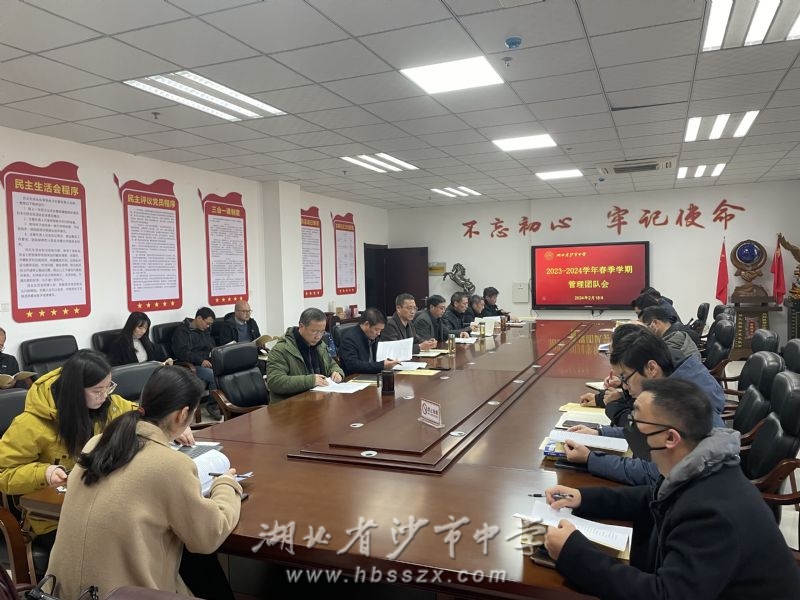 2月18日上午,沙市中學在綜合樓七樓黨員活動室召開了新學期管理團隊會議,會議由黨委副書記、校長徐善慧主持,全體管理團隊成員參加會議。