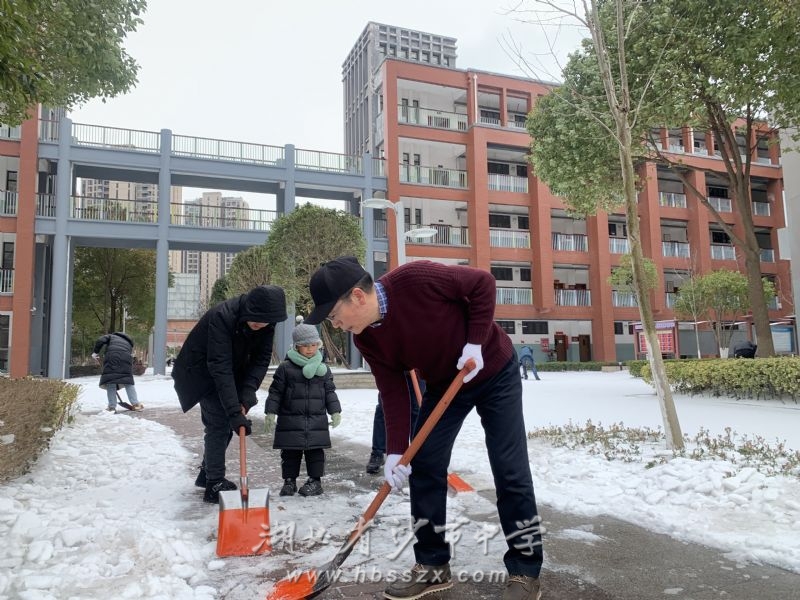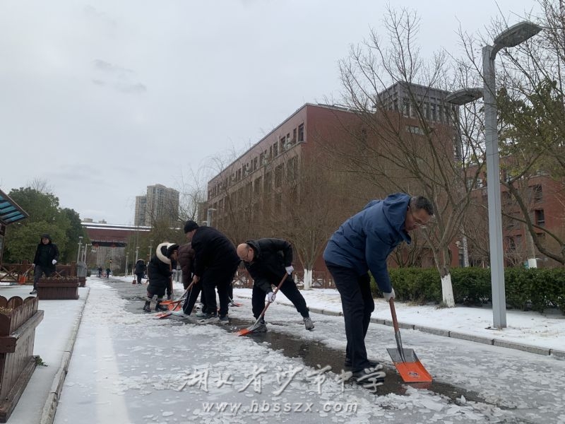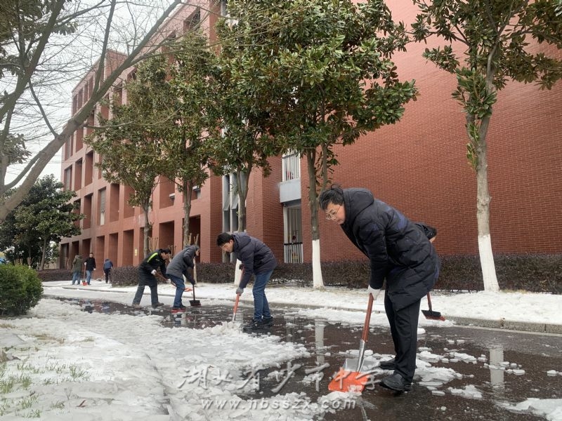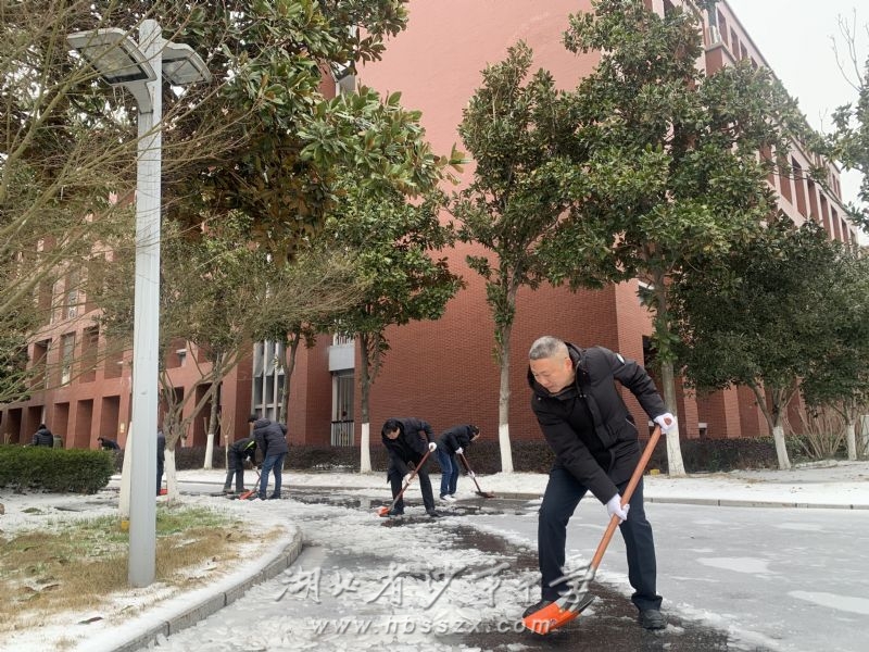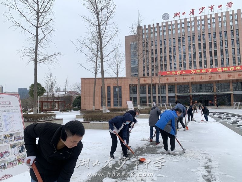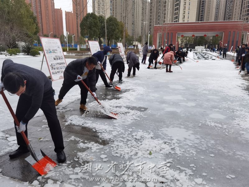 沙市中學校領導班子帶領黨員干部鏟雪除冰