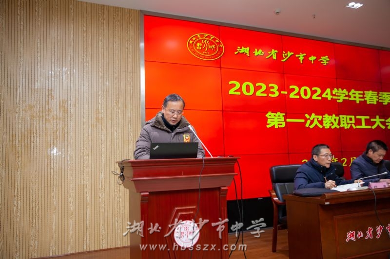 全體教職工參加會(huì)議 大夢(mèng)扶搖,更添鵬勢(shì);新春豪邁,再奮龍韜。充滿希望與憧憬的新學(xué)期如期而至,為科學(xué)謀劃新學(xué)期發(fā)展方向,確保開(kāi)學(xué)工作平穩(wěn)有序進(jìn)行,2月23日上午,湖北省沙市中學(xué)在綜合樓二樓會(huì)議室召開(kāi)了2023-2024學(xué)年度下學(xué)期第一次教職工大會(huì)。會(huì)議由校辦主任張珺主持,全體教職工參加會(huì)議。