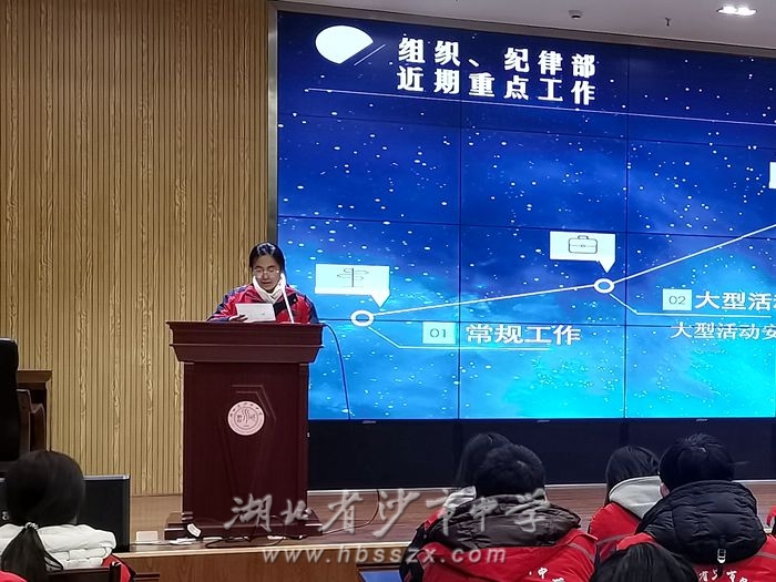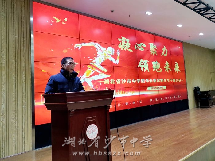 2024年2月28日晚上六點,在綜合樓二樓,我校團學會組織召開了新學期學生干部大會。大會由團學會秘書長楊緒星同學主持,沙市中學黨委委員、副校長胡直出席了本次活動。