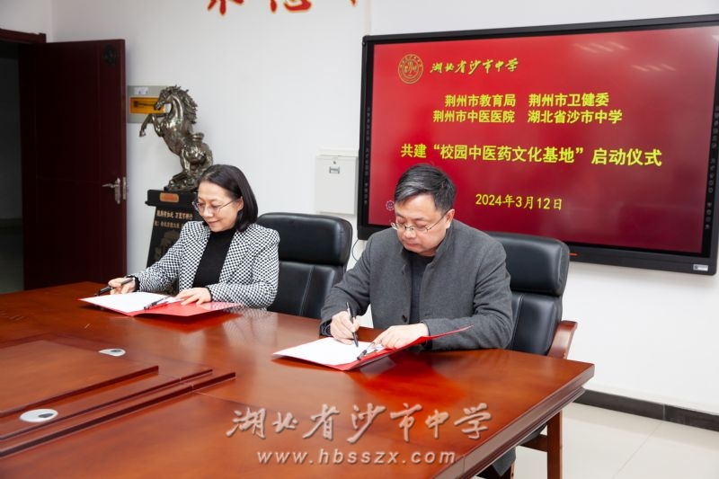 會議最后,市中醫(yī)醫(yī)院代表鄧?yán)枧c沙市中學(xué)代表徐善慧簽署《關(guān)于中醫(yī)藥文化進(jìn)校園合作協(xié)議》。